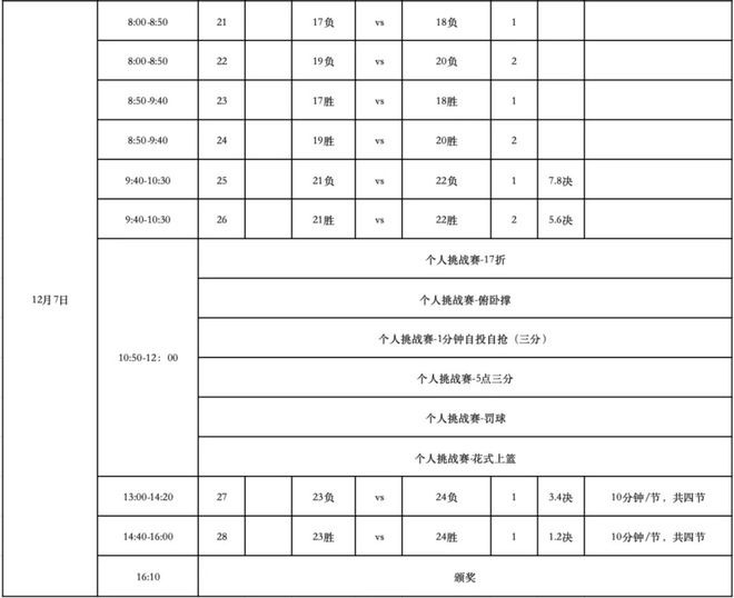· 决赛采用四节制,每节10分钟(末节最后1分钟为净时)