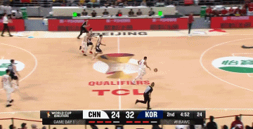 韩国队三分球持续命中,张镇麟篮下打进,但是对手还有三分,上半场比赛结束中国男篮34-47落后了13分。