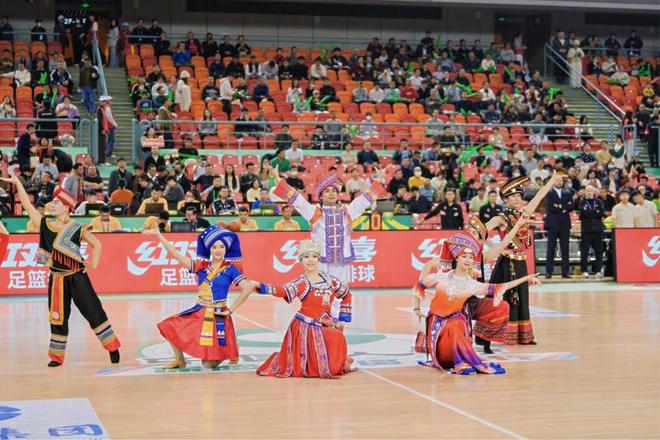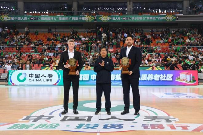 纪念品赠送环节上,广西旅游发展集团党委书记、董事长容贤标手持为赛事精心打造的“壮族铜鼓”纪念品走上舞台。壮族铜鼓作为壮族最具代表性的文化遗产之一,象征智慧、力量与团结;向球队赠送铜鼓,寓意广西人民将最珍贵的文化符号与体育精神相融合,传递奋勇拼搏、筑梦赛场、再创佳绩的美好祝愿。容贤标分别将铜鼓纪念品递到深圳马可波罗主教练迈克·凯利、长白山恩都里主教练钟诚手中,这一幕,是文化的交流与情感的联结,让各球队深刻感受到广西人民的热情与诚意。