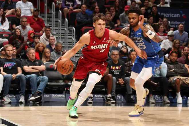 独行侠上一场主场96-102惜败灰熊,热火过去4场连赢尼克斯、勇士、公牛与76人收获4连胜。本场热火缺少约维奇、鲍威尔、维金斯与罗齐尔,独行侠缺少浓眉哥、莱夫利、欧文、埃克萨姆。首节开局热火3-7落后,热火多点开花一波13-3攻势反超6分,独行侠回敬一波9-4攻势追分,首节结束热火20-19领先独行侠。首节独行侠仅19中6,其中三分7中3,热火也只有26中8,其中三分9中1,希罗与阿德巴约两位核心合计7中0借助罚球得到1分。