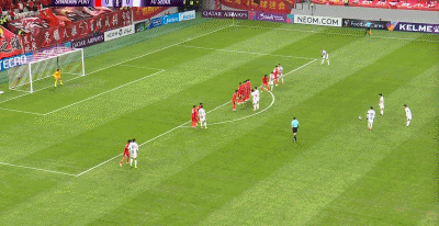 第70分钟,运气不佳,徐新传中折射后击中门框