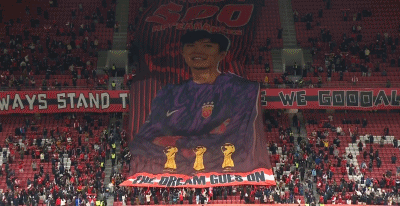 赛前,海港球迷展示颜骏凌500场纪念TIFO